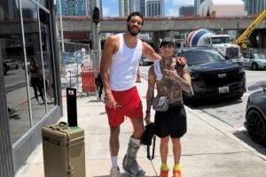 可以看到,塔图姆身穿便装,左脚仍穿着厚厚的保护靴,胡子没有刮的塔图姆略显沧桑。