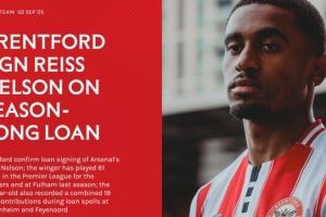 体育资讯9月2日讯 布伦特福德官网宣布,租借阿森纳右边锋尼尔森1个赛季。