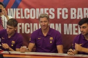体育资讯8月2日讯 据韩媒报道,炸鸡连锁企业BBQ集团于昨日下午在位于首尔清溪广场的BBQ Village举办了巴萨球员莱万、佩德里、费尔明的球迷签名会。